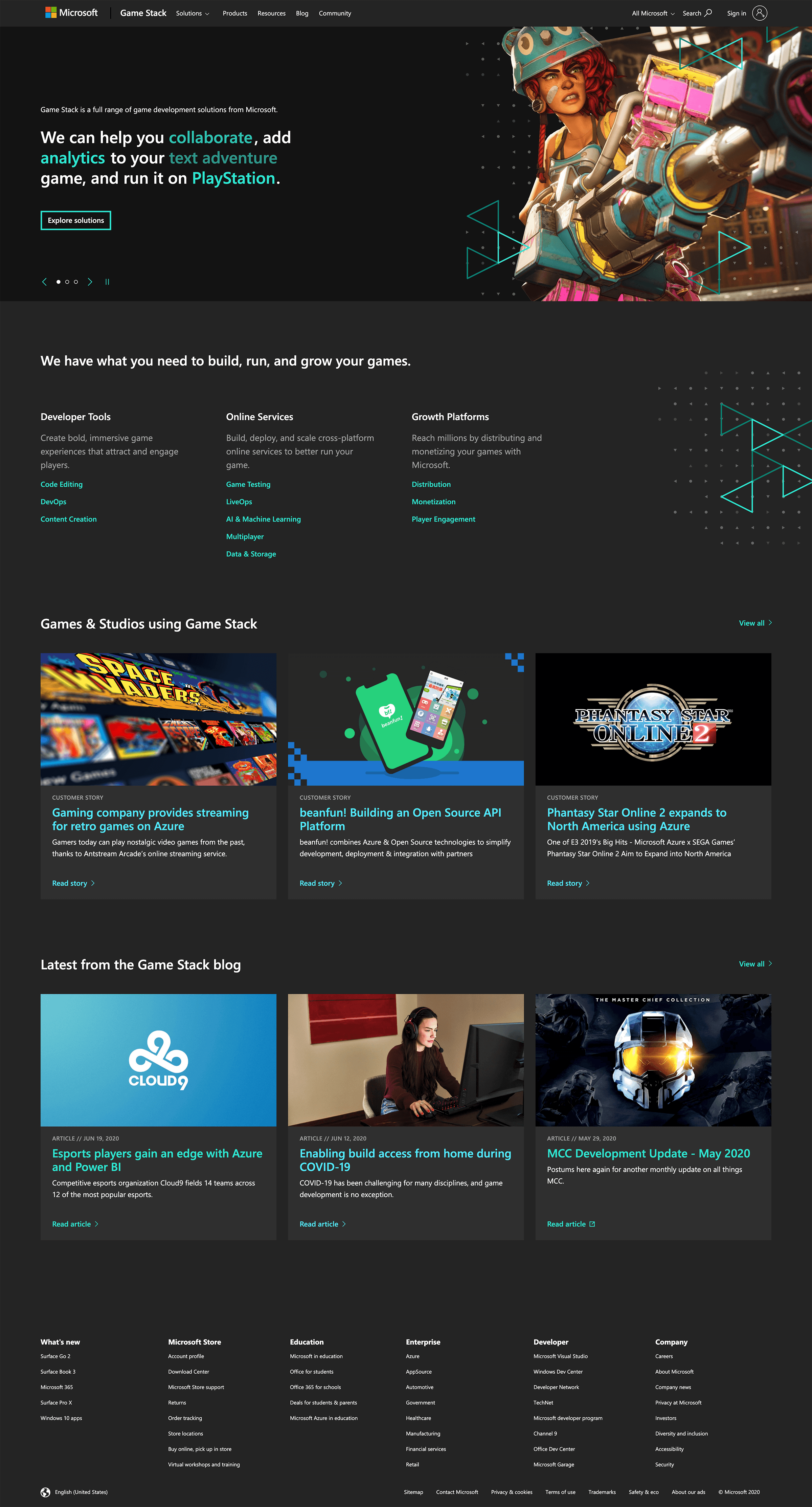 Evolved the Microsoft Game Stack brand for 2020, creating a more confident and unified visual system that connected digital, motion, and event experiences for developers.