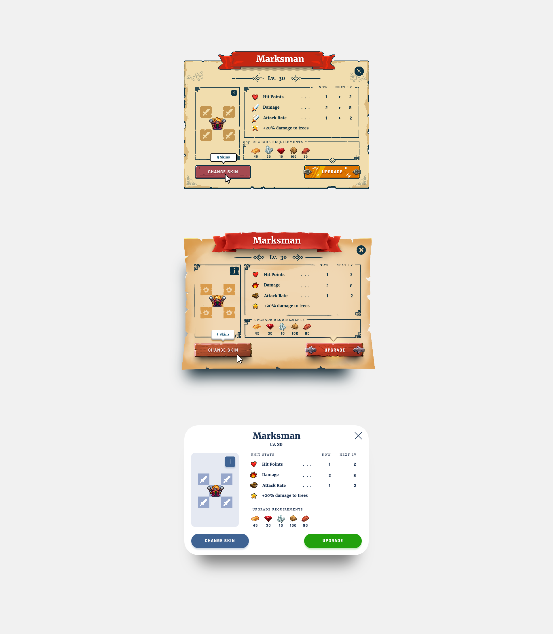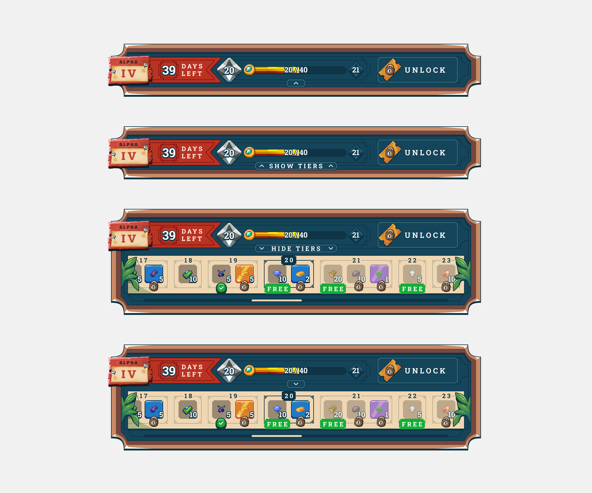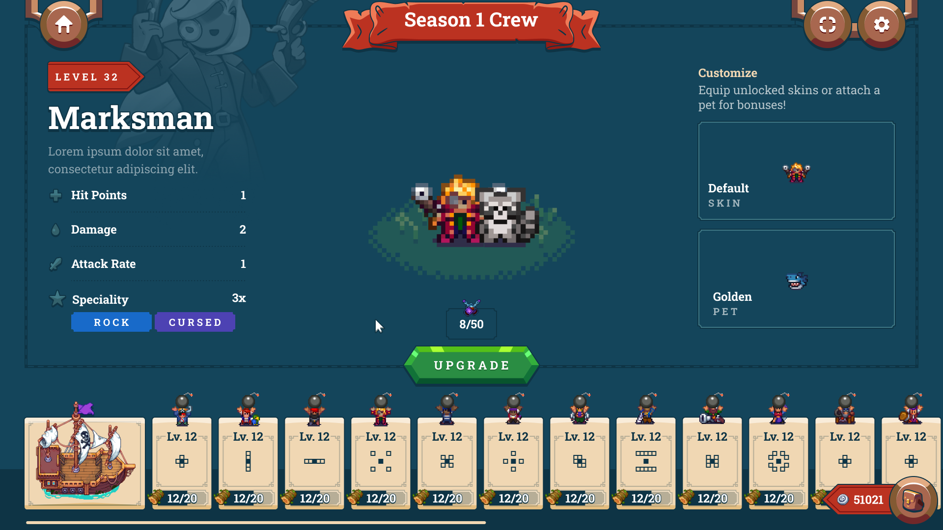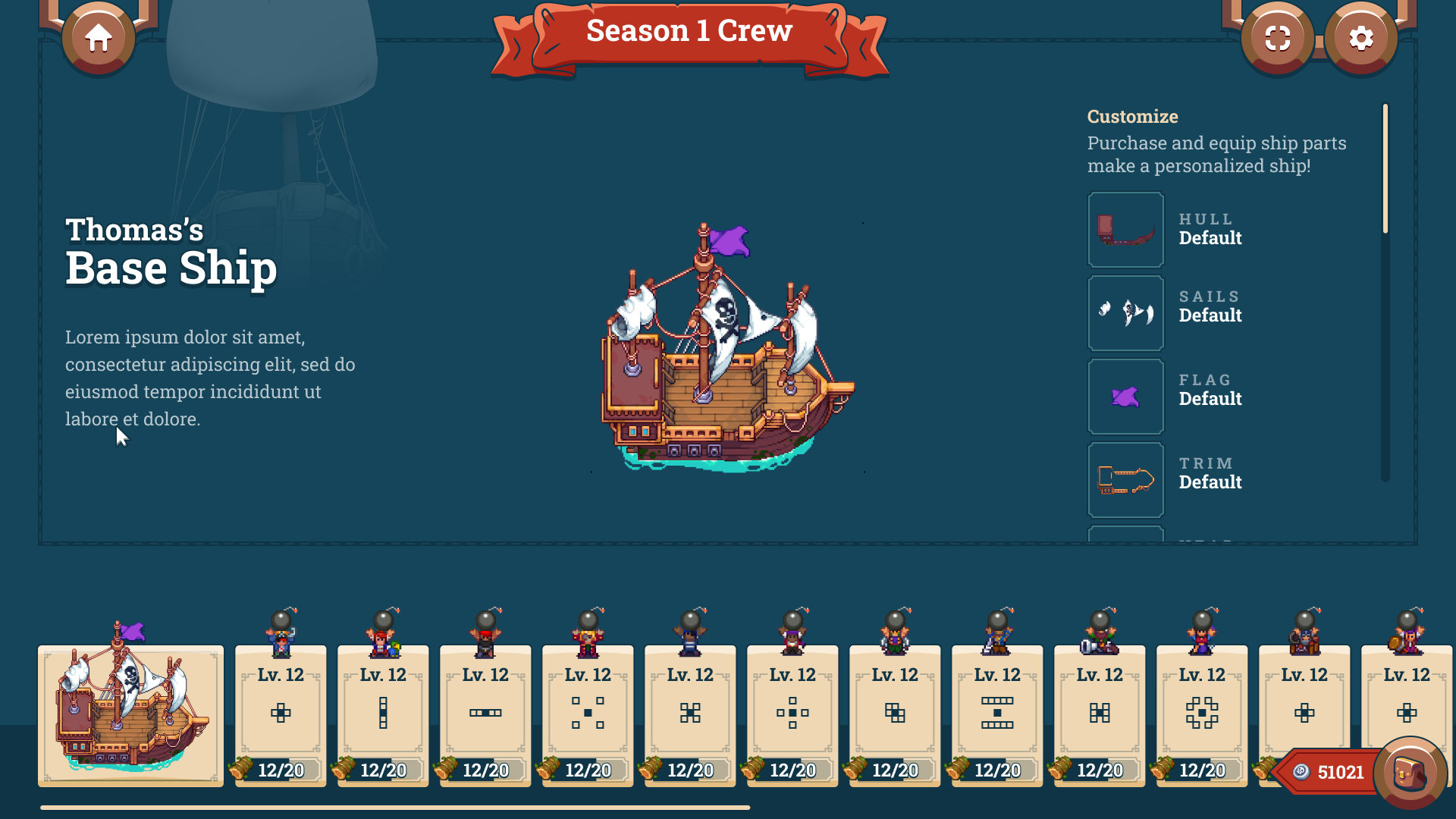 I was the senior UI/UX designer for Stream Pirates at Captain.tv, a startup creating interactive games designed to be played alongside live streams. Following the success of Stream Raiders, this was their second community-driven side game for streamers and viewers. My role included defining the visual language, creating UI elements and screens, and refining style directions that balanced resonance with the game’s key art and a more minimalist approach that let the artwork take focus.