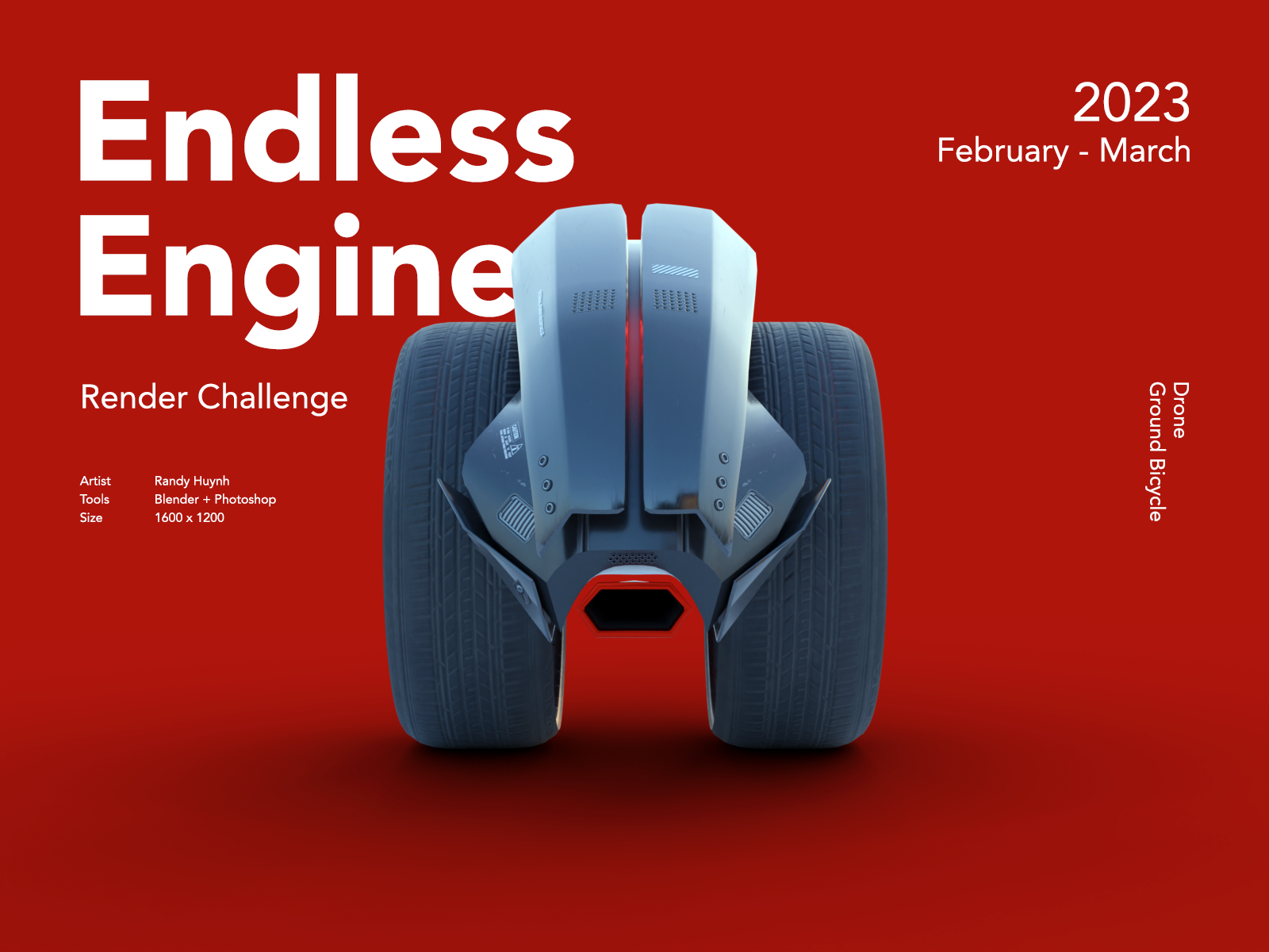I created a submission for the Endless Engines community challenge run by Clint Jones, where artists built animated 3D vehicle scenes from a shared template. Using a sci-fi theme, I designed a futuristic freeway chase featuring a drone as the centerpiece. This project was an opportunity to strengthen my skills in modeling, texturing, and animation within a focused creative brief, culminating in a render showcased in the official community montage.