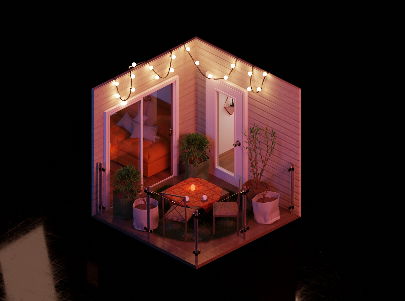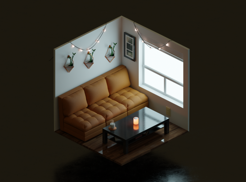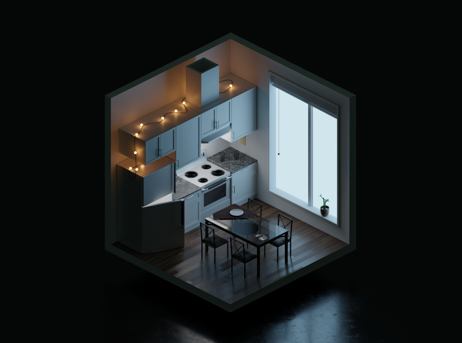 During the COVID-19 pandemic, I challenged myself to learn Blender by modeling and rendering different sections of my apartment. Working in an orthographic perspective, I treated each room as both a design study and a storytelling canvas.