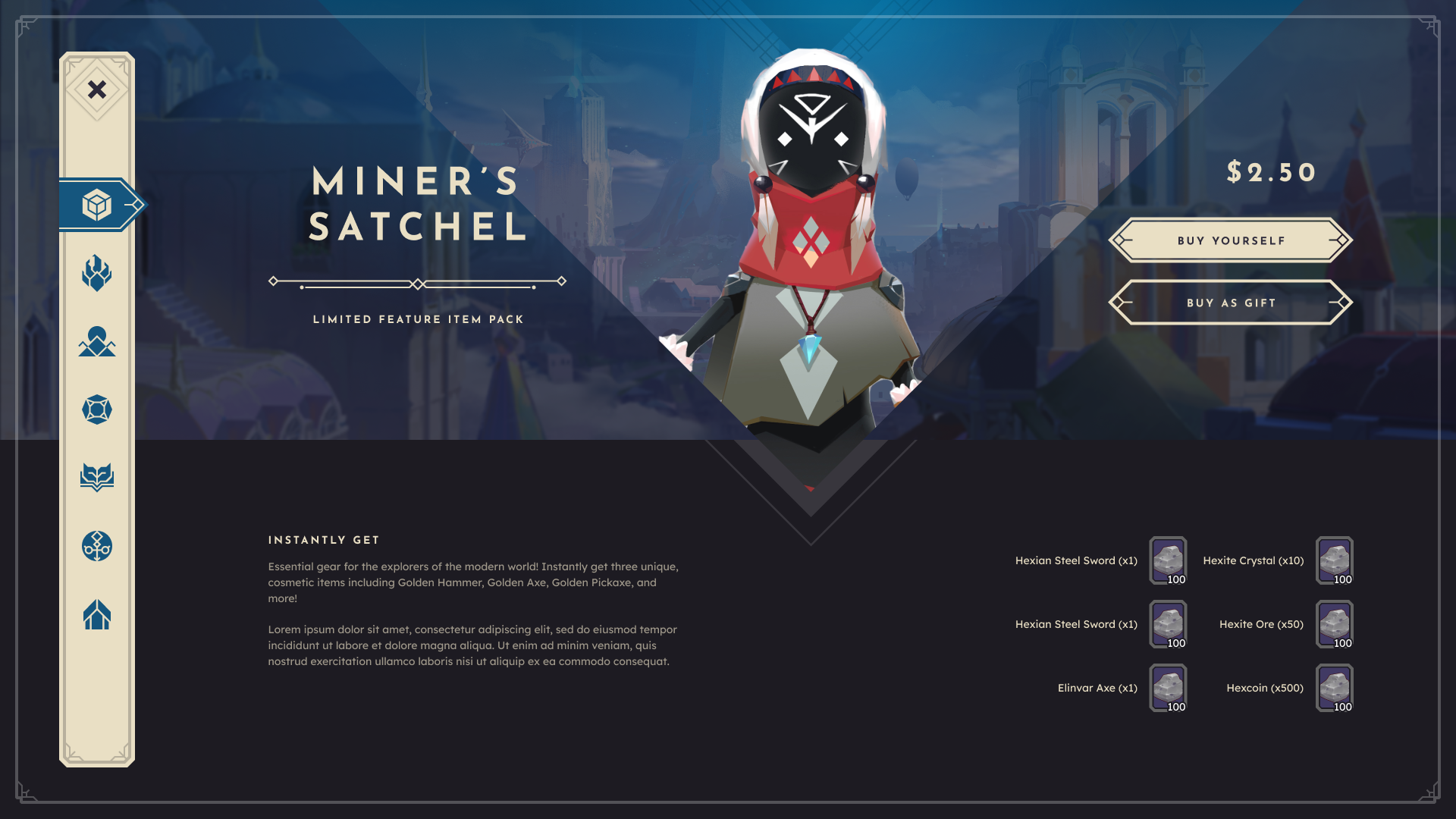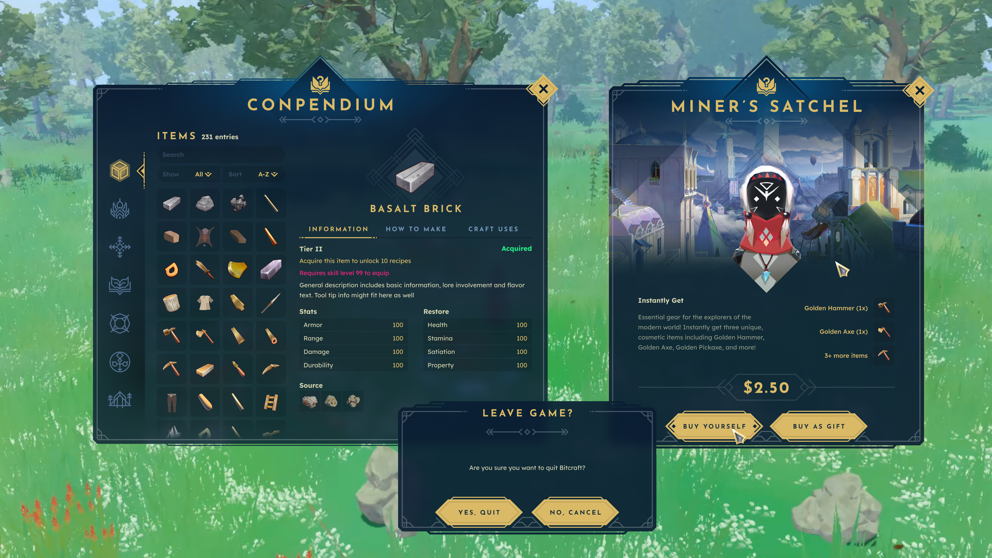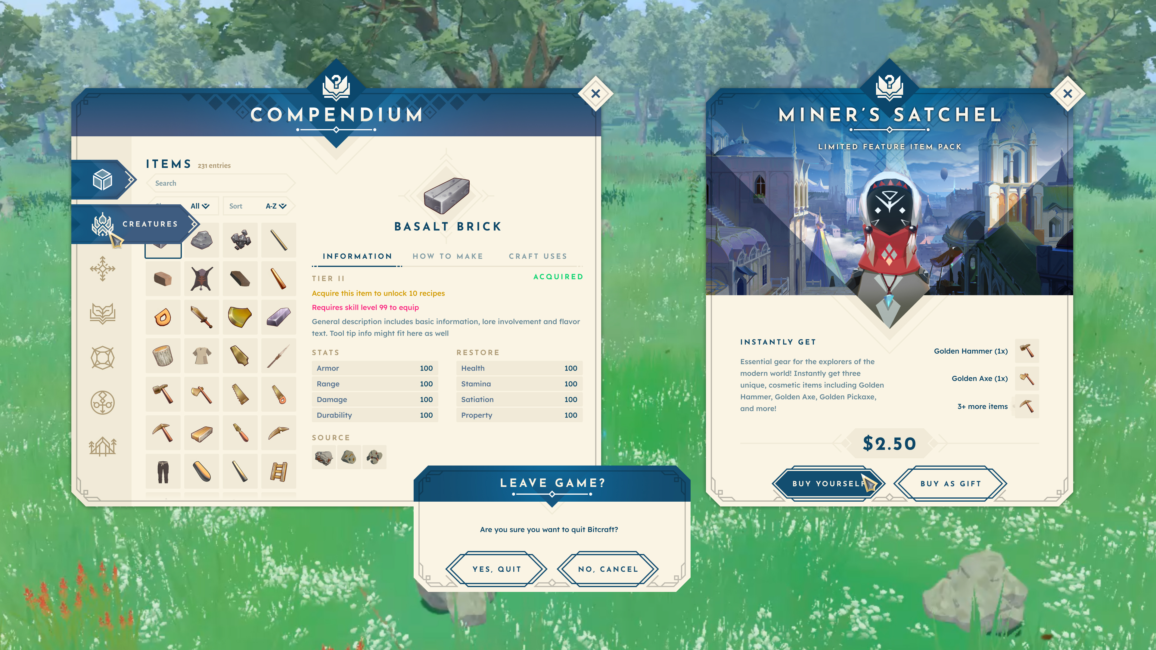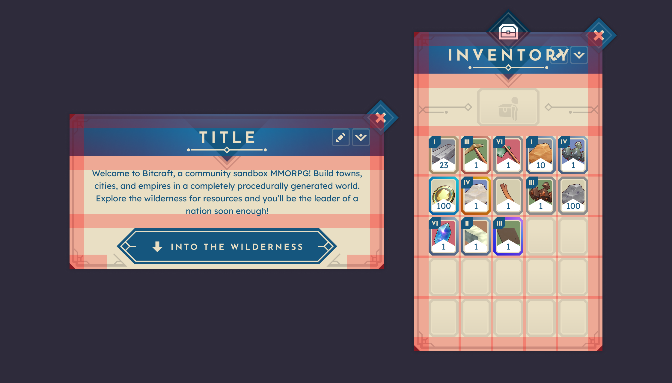 I was brought on to define BitCraft's UI from the ground up. Working directly with the CEO, CTO, Art Director, and Game Director, the team needed a visual direction that felt native to the game's world and narrative while scaling across the broad surface area of an MMO.