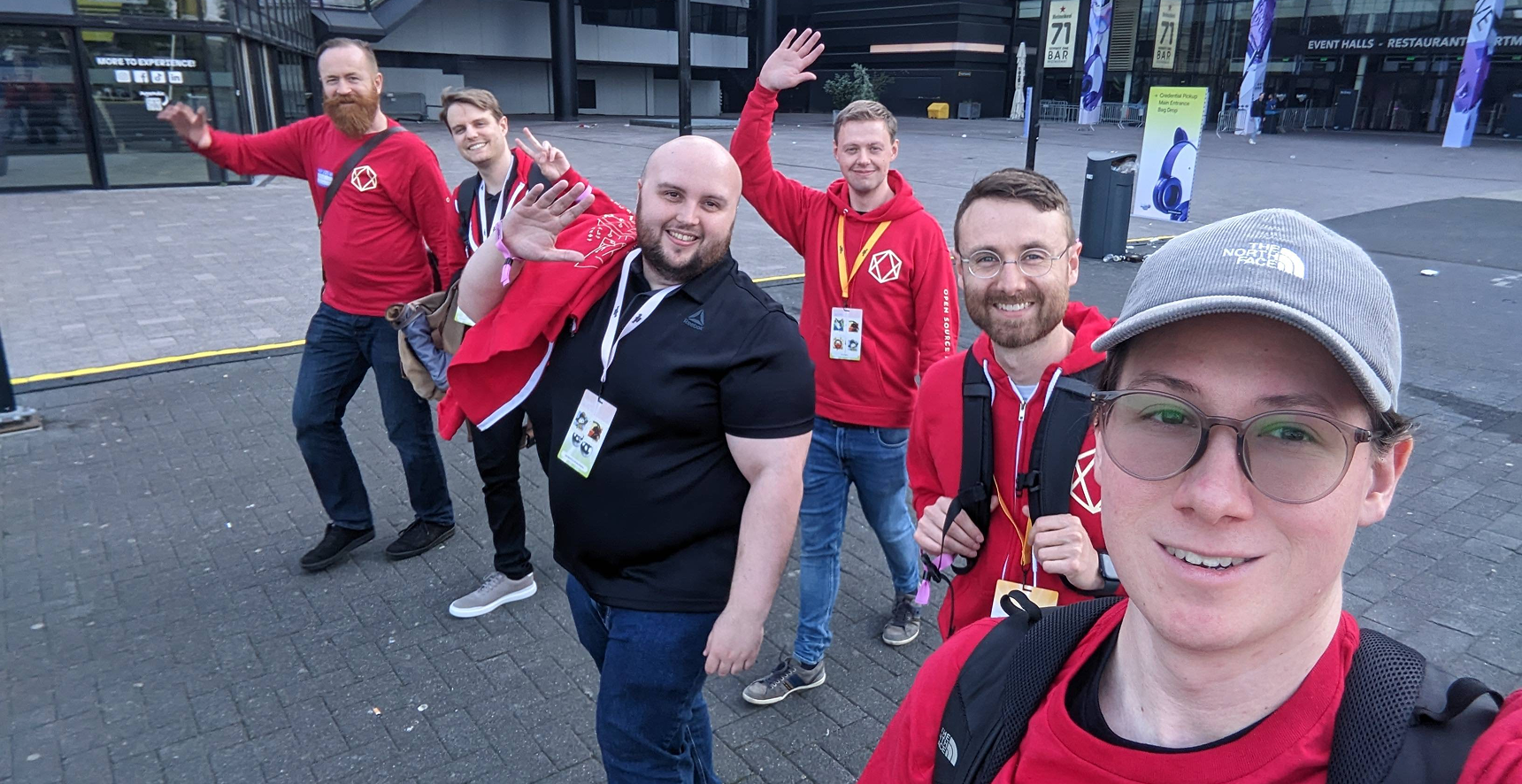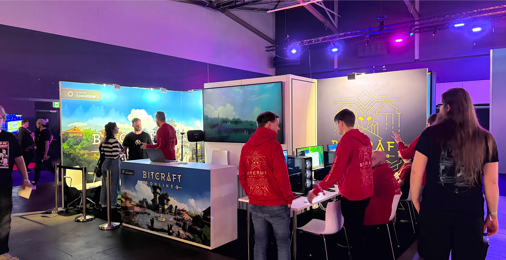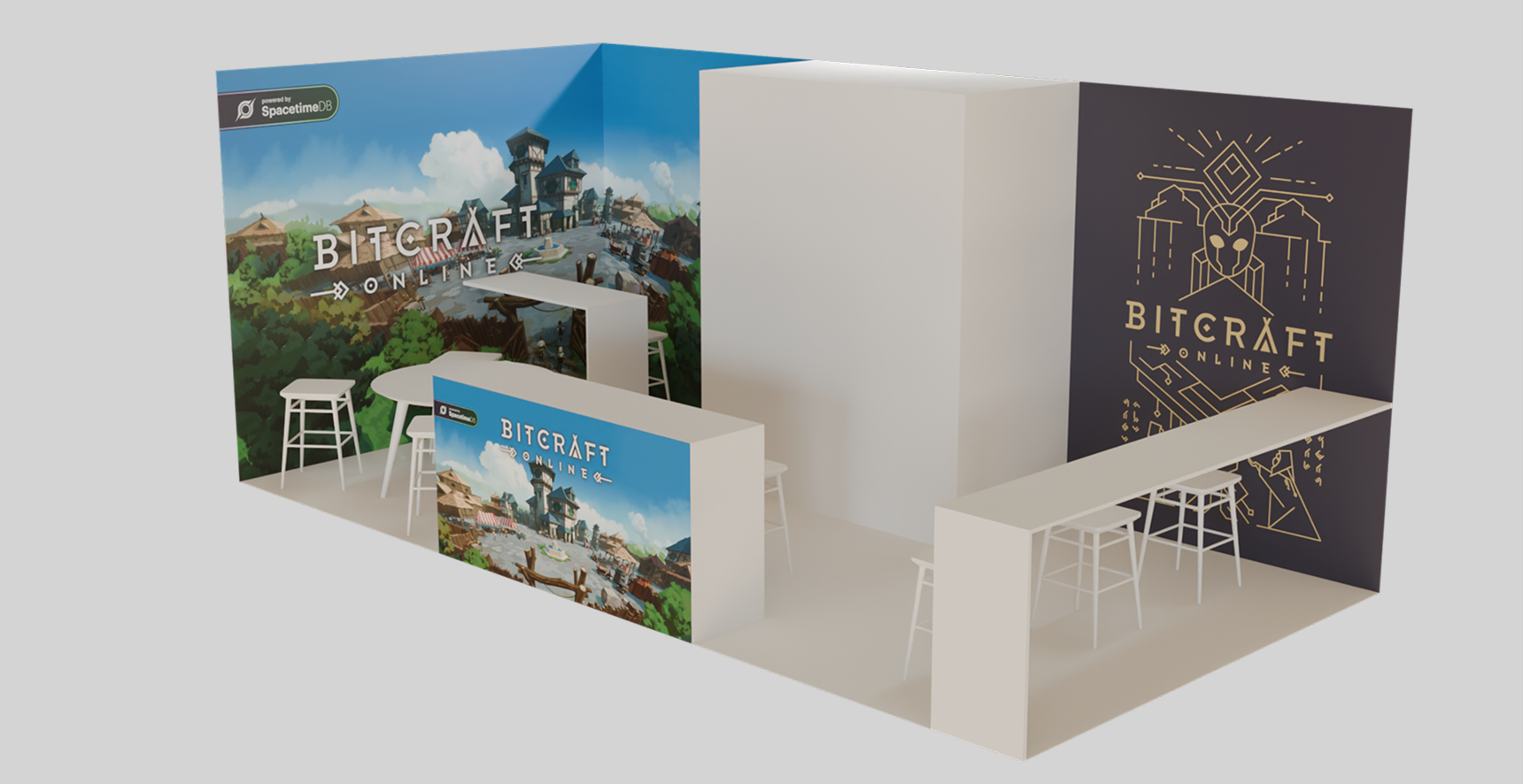 The design language was extended into booth design, merchandise, and Steam campaign assets.